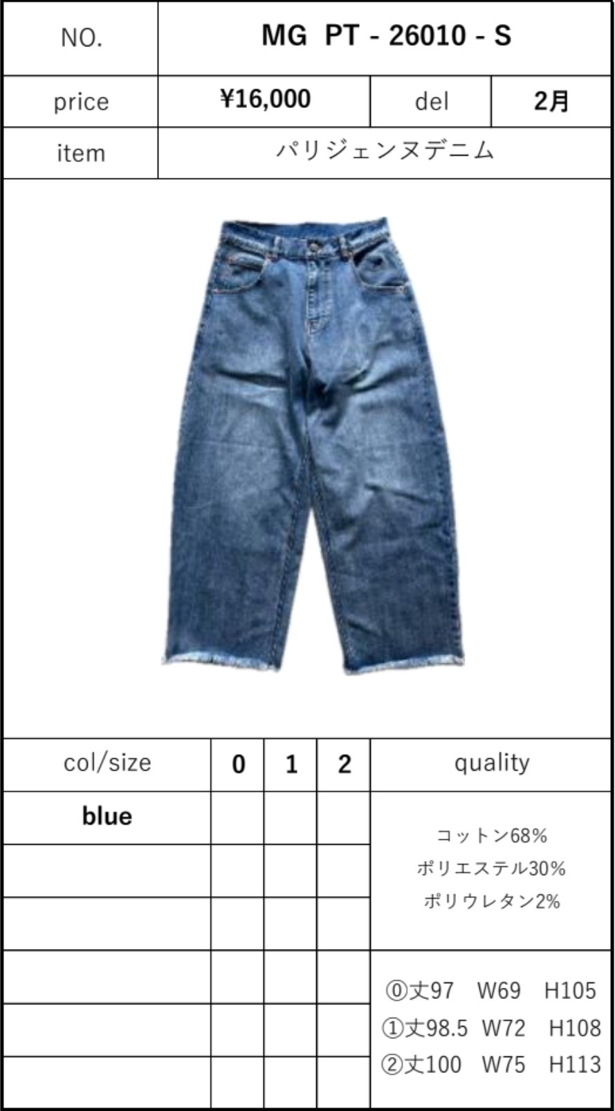 パリジェンヌデニム 予約商品 パリジェンヌデニム (MGPT-26010-S) 2026年2月デリバリー予定 他の商品とは別々にご購入ください キャリア決済でお支払い頂いた場合は商品入荷後、再購入での手続きが必要な可能性がございます クレジットカードでお支払いいただけますと幸いです blue 0(S) 1(M) 2(L) 在庫状態 : 購入可能 ¥17,600(税込) 只今お取扱い出来ません 数量