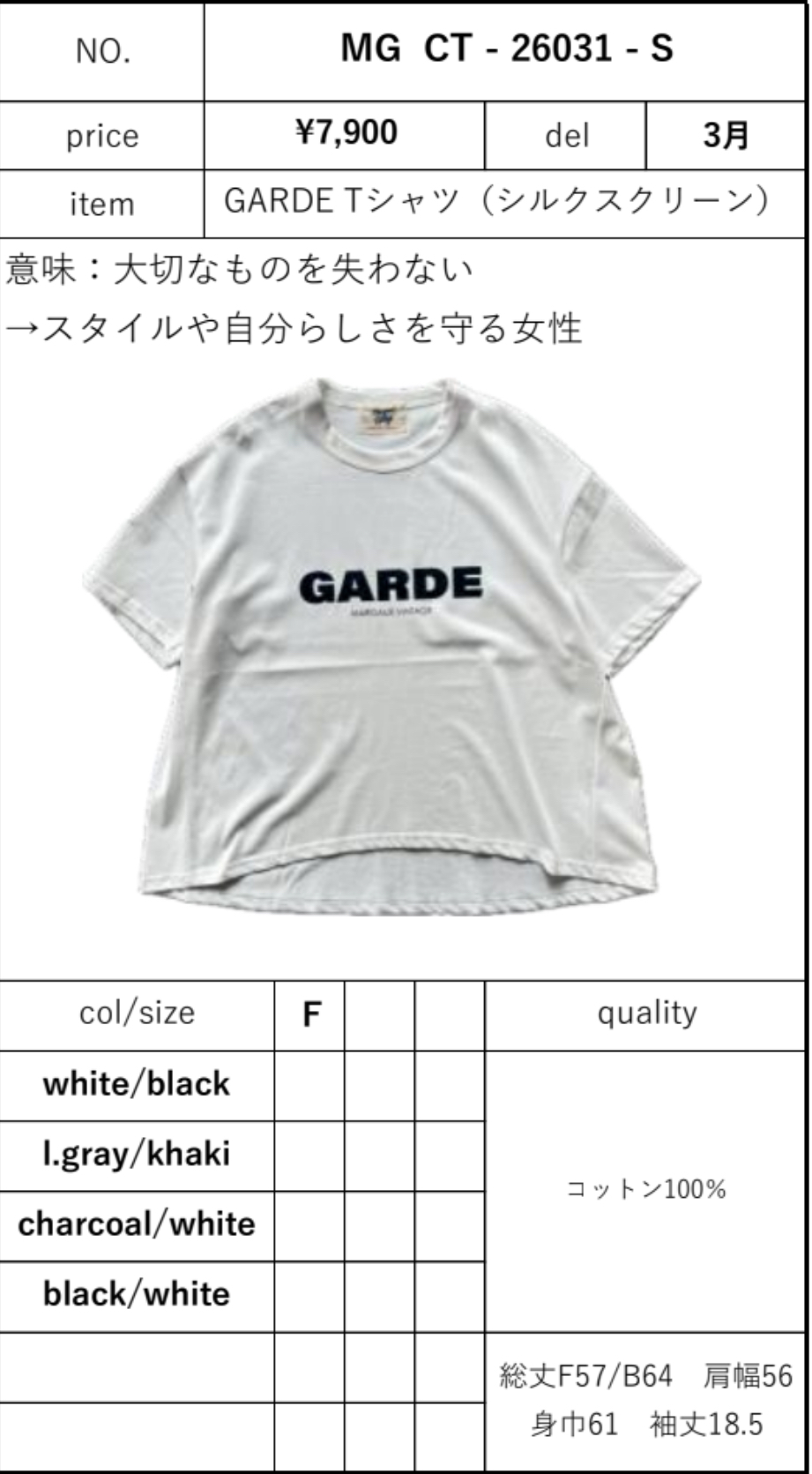 GARDE Tシャツ 予約商品 GARDE Tシャツ (MGCT-26031-S) 2026年3月デリバリー予定 他の商品とは別々にご購入ください キャリア決済でお支払い頂いた場合は商品入荷後、再購入での手続きが必要な可能性がございます クレジットカードでお支払いいただけますと幸いです カラー white/black l.gray/khaki charcoal/white black/white 在庫状態 : 購入可能 ¥8,690(税込) 只今お取扱い出来ません 数量