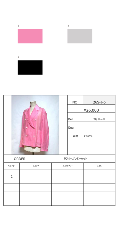 ラフオーガンジャケット 予約商品 ラフオーガンジャケット (26S-J-6) 2月末デリバリー予定 身幅 約47センチ 着丈 約58センチ 他の商品とは別々にご購入ください キャリア決済でお支払い頂いた場合は商品入荷後、再購入での手続きが必要な可能性がございます クレジットカードでお支払いいただけますと幸いです カラー ピンク ライトグレー BK 在庫状態 : 購入可能 ¥28,600(税込) 只今お取扱い出来ません 数量