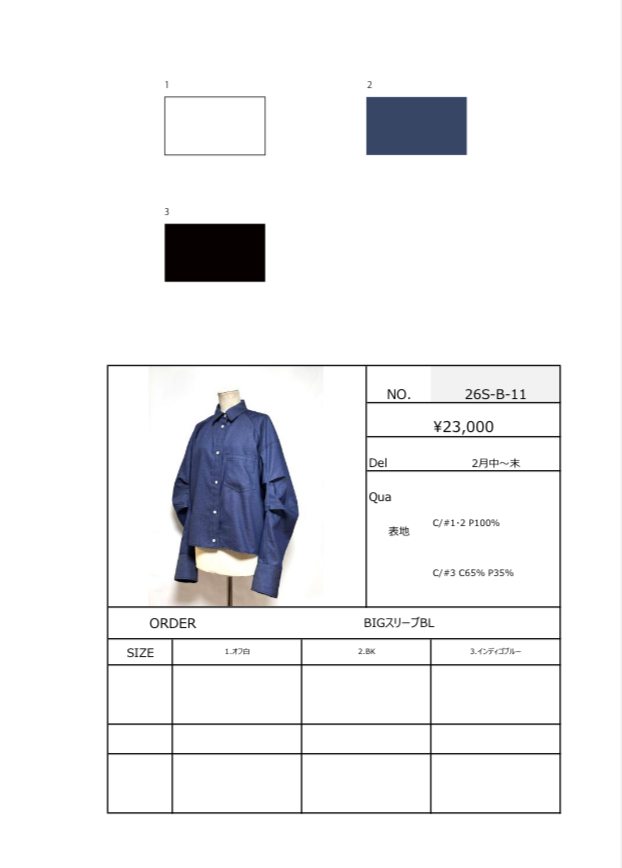 BIGスリーブBL 予約商品 BIGスリーブBL (26S-B-11) 2月末デリバリー予定 着丈 約56センチ 身幅 約67センチ 他の商品とは別々にご購入ください キャリア決済でお支払い頂いた場合は商品入荷後、再購入での手続きが必要な可能性がございます クレジットカードでお支払いいただけますと幸いです カラー オフ白 BK インディゴブルー 在庫状態 : 購入可能 ¥25,300(税込) 只今お取扱い出来ません 数量