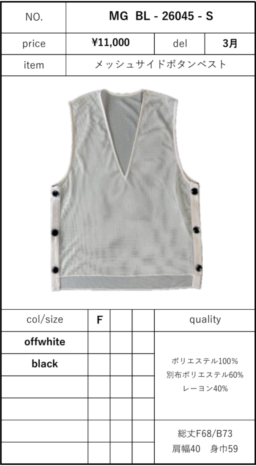 メッシュサイドボタンベスト