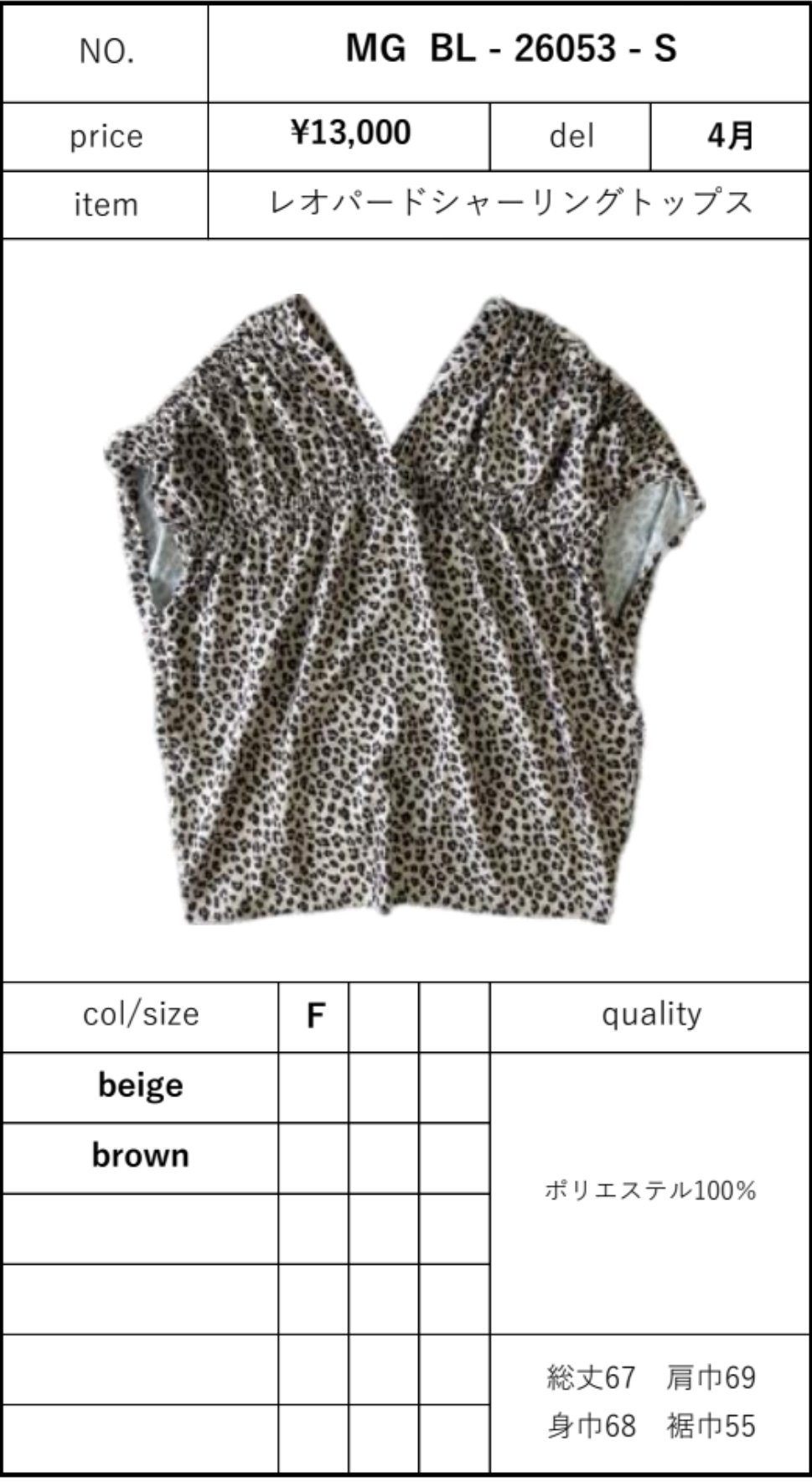 レオパードシャーリングトップス 予約商品 レオパードシャーリングトップス (MGBL-26053-S) 4月末デリバリー予定 (デリバリーは前後する可能性もございますのでご了承ください) キャリア決済でお支払い頂いた場合は商品入荷後、再購入での手続きが必要な可能性がございます クレジットカードでお支払いいただけますと幸いです 他の商品とは別々にご購入お願い致します カラー beige brown 在庫状態 : 購入可能 ¥14,300(税込) 只今お取扱い出来ません 数量