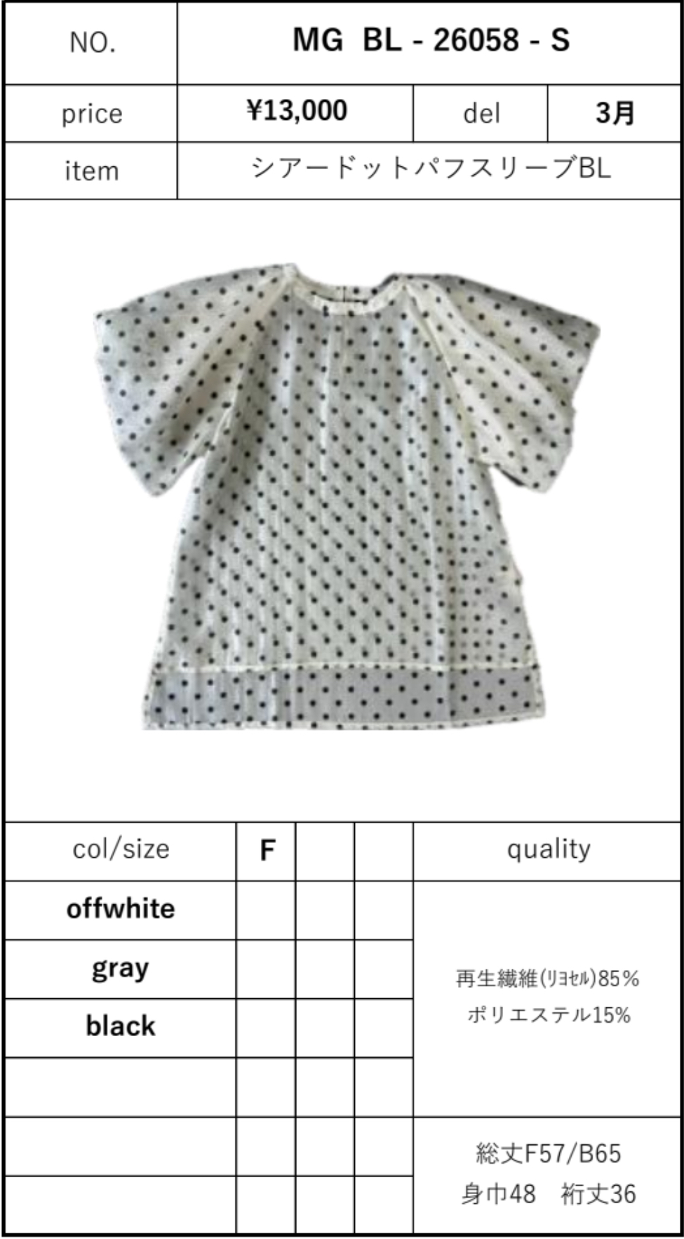シアードットパフスリーブBL