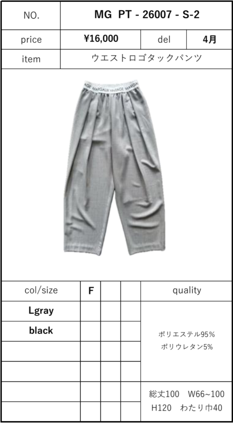 ウエストロゴタックパンツ