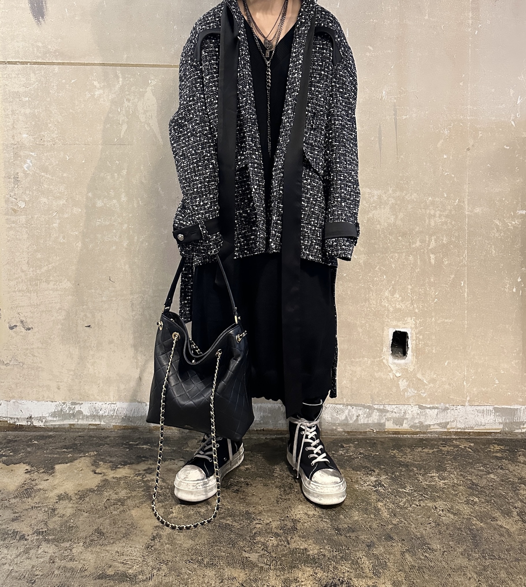 MUL174-246 DRAPE CHAIN ONE HANDLE BAG Blackキルティング型押し