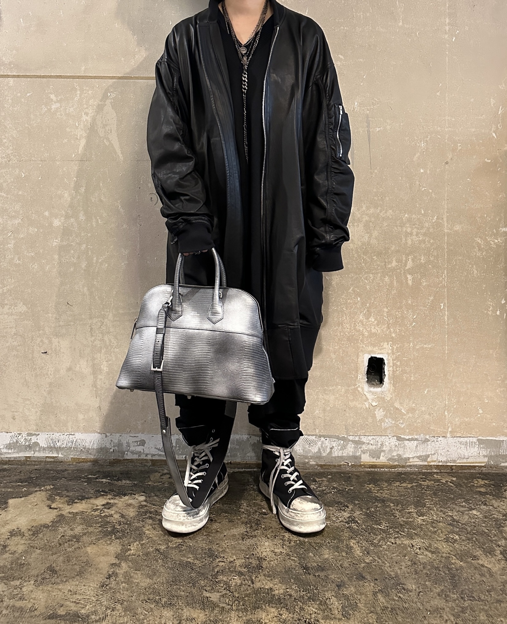 MUL079 ROUND TOTE M Black sliver coating レザーショルダー