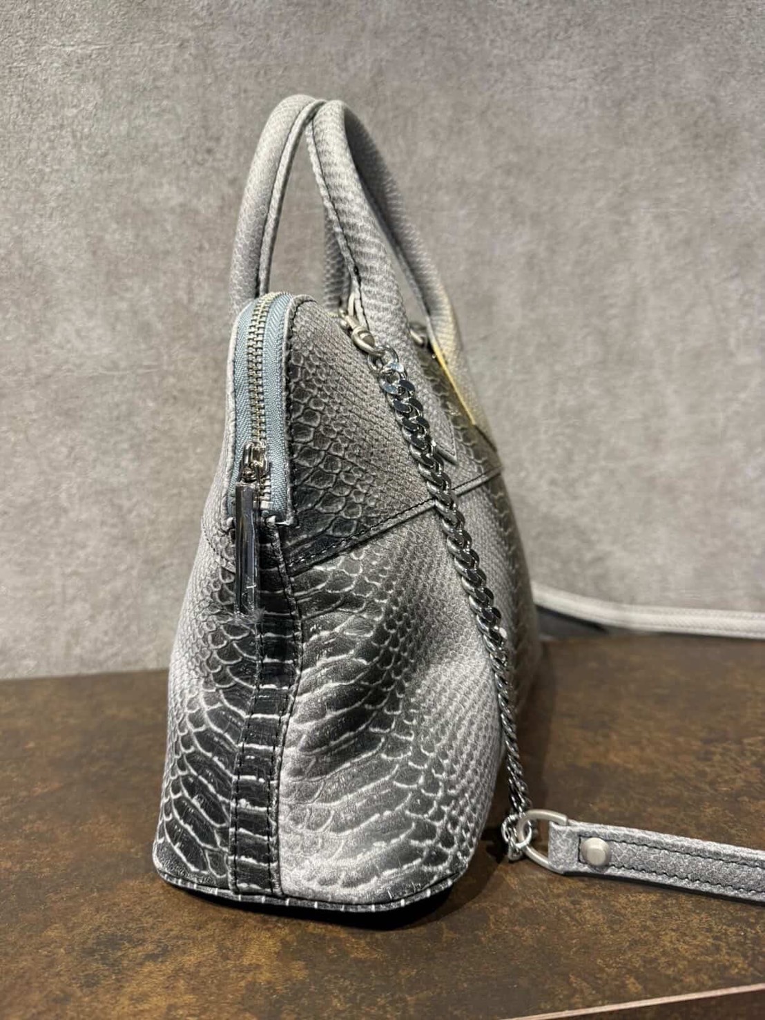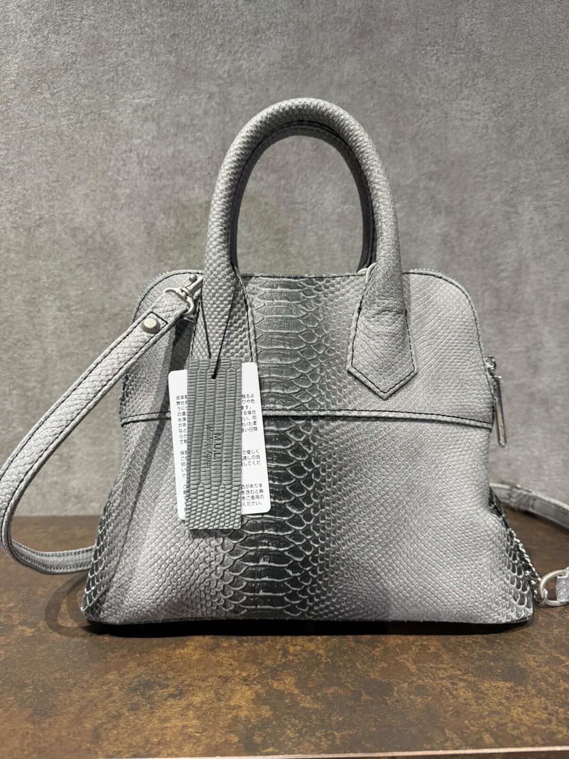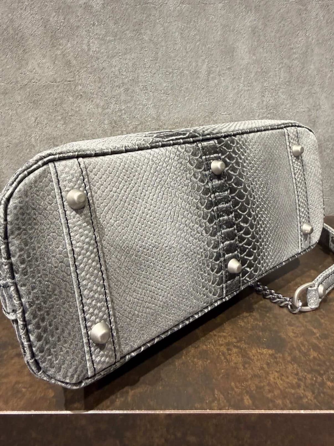 MUL078-241A ラウンドトートS チェーンショルダー ゴールドペイント加工 ホワイトヌバック パイソン型押し